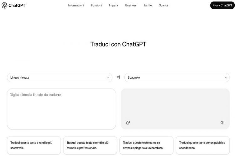 Al momento, però, ChatGPT Translate presenta alcuni limiti: non supporta ancora la traduzione di documenti, pagine web o testi scritti a mano, funzionalità che potrebbero essere introdotte nei prossimi aggiornamenti.